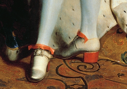 High red heels of Louis XIV from portrait by Hyacinthe Rigaud
